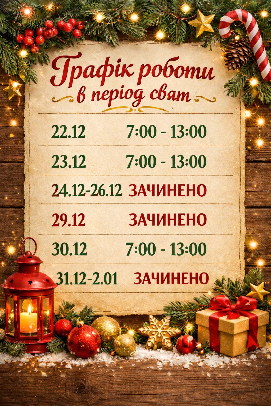 У святковий період ми працюємо згідно з опублікованим графіком роботи 🕒